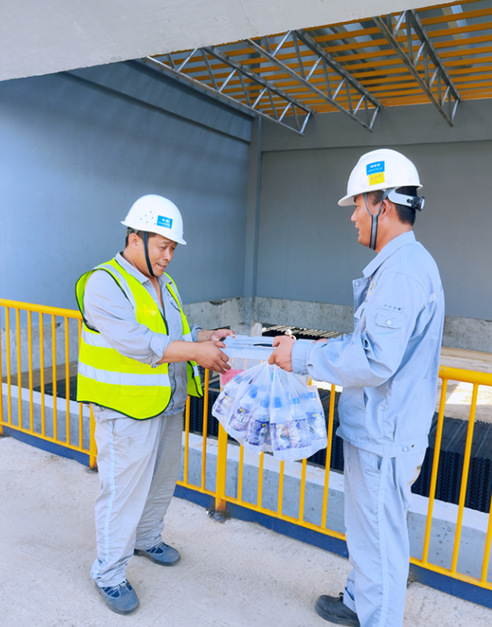 此项目从中标到开工一直受到公司经理层的高度重视,并明确指出:时间紧任务重,项目部要鼓足干劲,高效推进项目建设。在疫情影响下,公司生产管理部克服种种困难,加班加点装车,及时与属地及当地疫情防控部门沟通,经过多方面共同努力,最终按要求如期把货物发到施工现场。开工就在眼前,项目部人员突然接到在粘接剂厂家无法发货消息,项目部紧急联系附近的供货厂家,生产管理部通过多次协调项目如期开工,并保证了现场施工进度。海南炎热的气候条件同样困扰着施工人员,项目部专门配备了空气呼吸器以应对突发情况,并为施工人员准备了藿香正气水等多种降暑药物,最大条件确保现场施工人员的身体健康,保障安全生产。