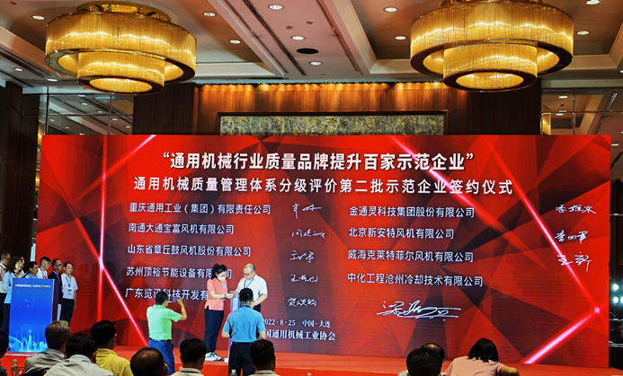 会议同期举行了首批“通用机械行业质量品牌提升百家示范企业”授牌仪式及第二批示范企业签约仪式。公司入围了示范企业,梁海兵现场进行了签约仪式。公司作为常务理事单位和示范企业,将会以更加饱满的热情,更加务实的精神做好行业工作,为开创通用机械行业更加美好的明天贡献力量!
