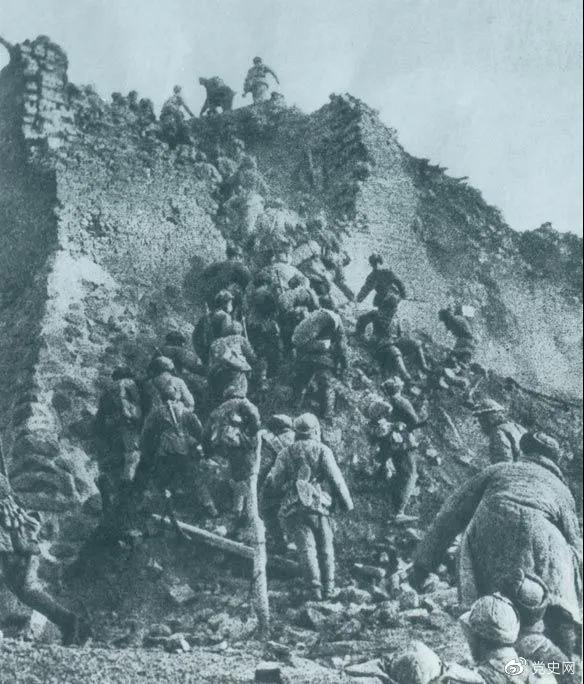 1948年12月,人民解放军向新保安守敌发起攻击。这是解放军战士登上新保安城头。